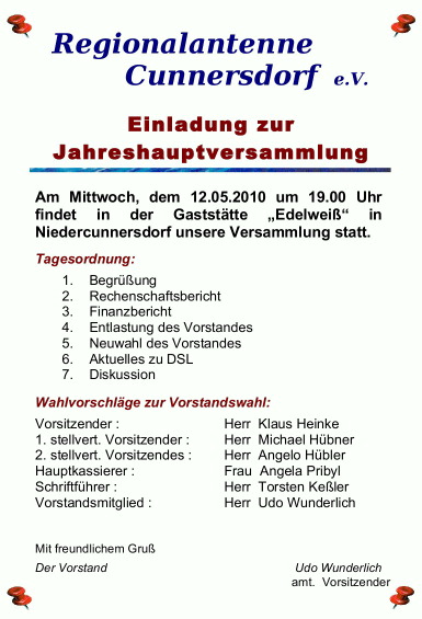 Aus aktuellem Anlass müssen wir Sie nochmals darauf hinweisen: