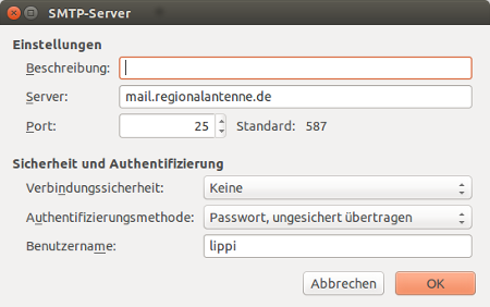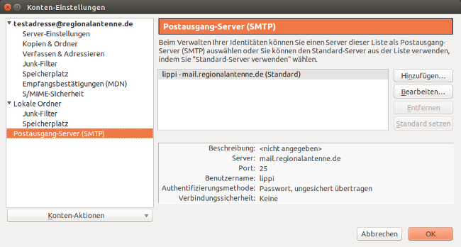 Mit Thunderbird o. ä. funktioniert das nur innerhalb unseres Kabelnetzes !